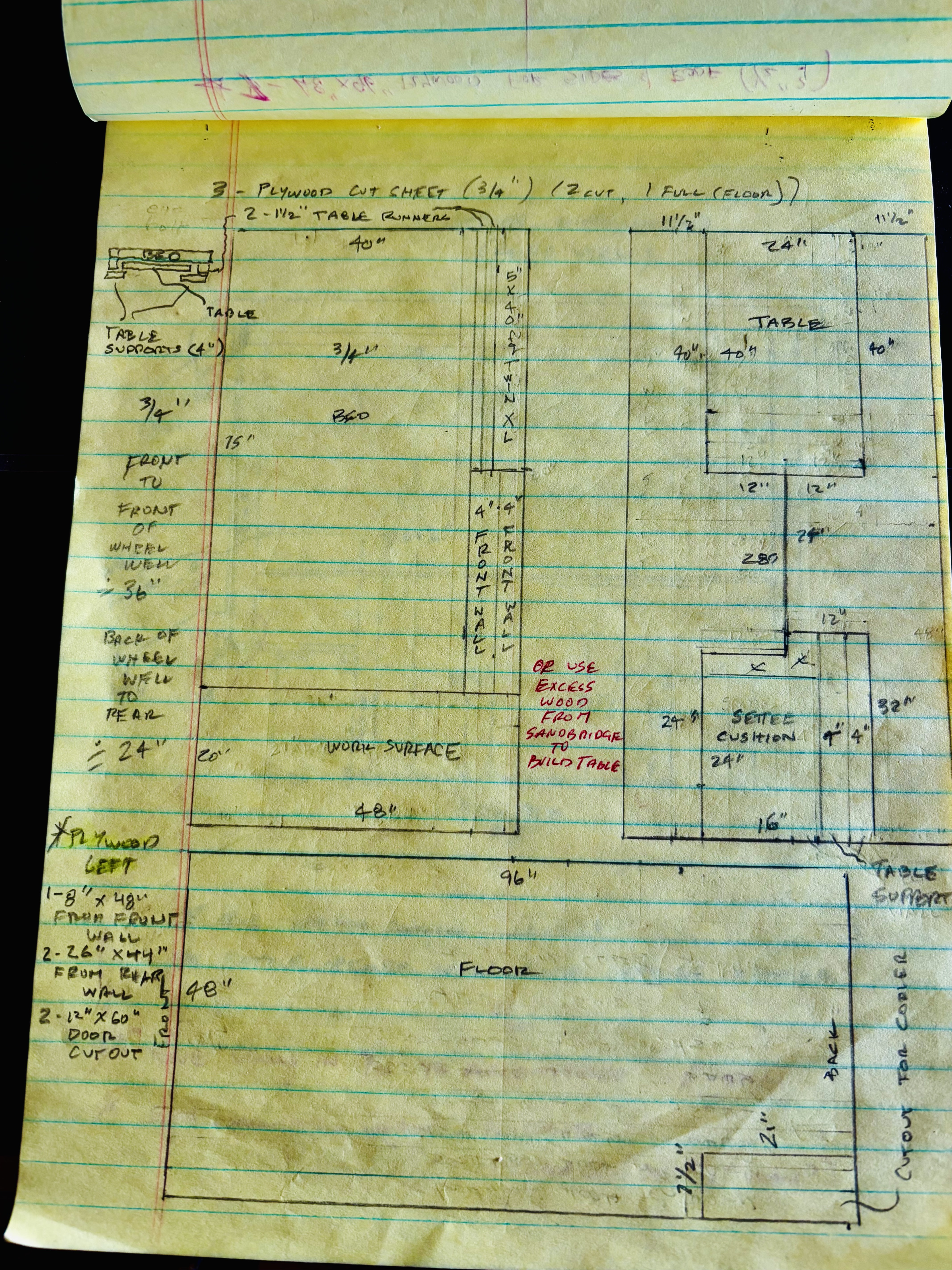 If it looks like my drawn to scale little camper cabin is drawn on parchment it’s because I started planning all of this last fall to see how it would fit and work in the bed of my 1989 F350 and paper has a way of getting crinkly and parchment-y with age (especially if you’re erasing and changing things as many times as I did)